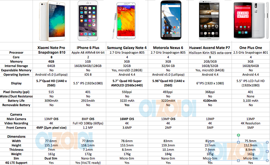 Especially the Xiaomi Note Pro with 5.7″ Quad HD display, 65-Bit Octa-Core Snapdragon 810 and whopping 4GB of RAM impressed many smartphone users. The whole package of Xiaomi Note Pro is even smaller then the iPhone 6 Plus while having a larger screen.