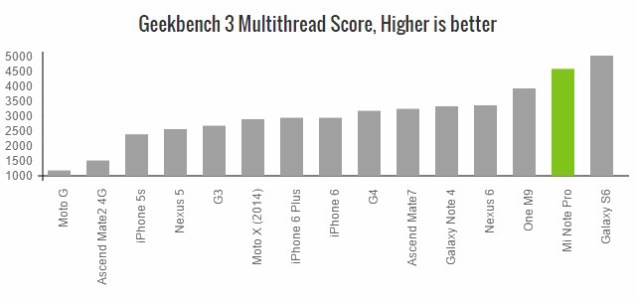Remarkably, Xiaomi Mi Note Pro 4GB RAM does beat some giants like HTC M9 and LG G4 and even Samsung Galaxy S6 sometimes has to give up the place to Mi Note Pro in some tests.