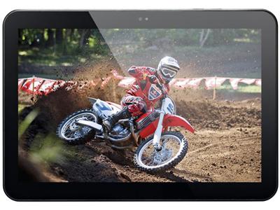 This tablet's is equipped with a 10 inch screen.This measures out to 151 PPI pixels-per-inch (PPI), which is about average for a tablet display.