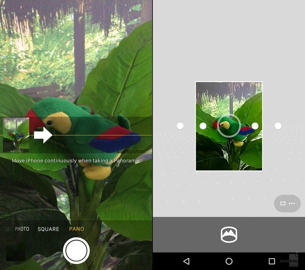 Talking about specific functions iOS and Android bring users, we notice that the iOS camera app enables you to shoot regular pics and videos, Time Lapse, Slo-Mo, and Panorama. And Marshmallow camera app gives you Photo Sphere, Panorama, Lens Blur, and video recording as its defining features.