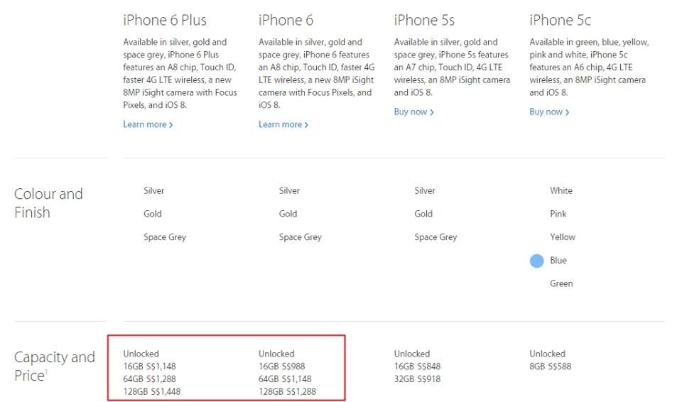 - Singapore – iPhone 6 starts from S$988 while the iPhone 6 Plus begins at S$1,148. (2500 RM and 2900 RM)