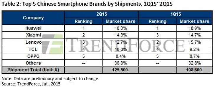 Huawei wins powerful Xiaomi in the shipments battle of Q2 of 2015?