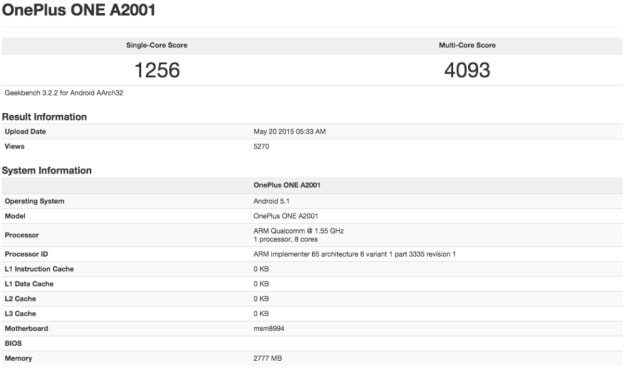 To be specific, that is a listing recorded in the database of Geekbench on May 20, 2015. It reveals that the next OnePlus’s handset will also feature 3GB RAM with Android 5.1 operating system besides Snapdragon 810 MSM8994 1.5GHz. However, apart from that, we cannot tell more about the OnePlus Two specs. Even the name for it has not been confirmed yet. In this article, we call the new phone OnePlus Two just in order to help distinguish between OnePlus products, but no one knows for sure whether it will be named as OnePlus Two, OnePlus One 2015, or another name.