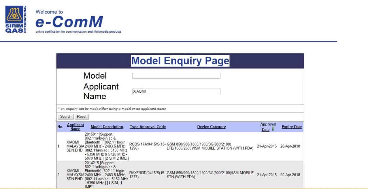 Xiaomi “i is coming” event is happening this Thursday, April 23th, in India to introduce a new global phone. Meanwhile here in Malaysia, we have spotted 2 flagship phones from Xiaomi on Malaysia’s SIRIM Certification database. It seems that Malaysia is one of the first countries outside China to get the 5.7″ Xiaomi Mi Note Phablet with Snapdragon 801 and 3GB RAM, the other phone is the long awaited Xiaomi Mi4 3G.